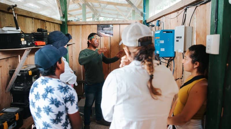 Nantu Canelos – President of Kara Solar and a member of the Achuar community of Sharamentsa – explains: “Technical knowledge is cultivated within the communities so that power — in every sense of the word — remains in their hands.”